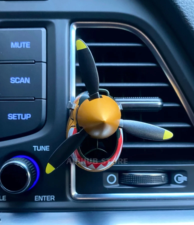 The air freshener is installed on the car's ventilation grille and combines practicality with decorative appeal. This aviation air freshener is suitable for car enthusiasts, AvGeeks, pilots, mechanics, and anyone who appreciates aviation style in the details. The Tiger airplane is an easy way to show your interest in aviation even on everyday trips.