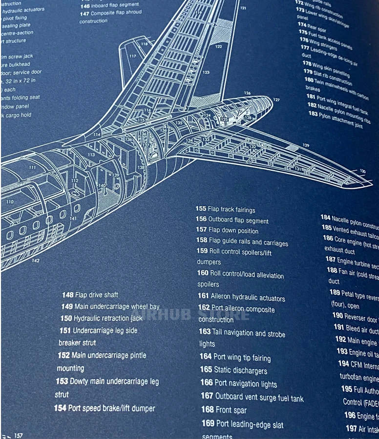 A poster with a drawing of the Airbus A320 airplane, a dark blue poster shows the layout of this aircraft. All the elements are numbered and described around the image, with a decoding and description. The poster itself is printed on thick blue paper, measuring 61 cm by 33 cm.