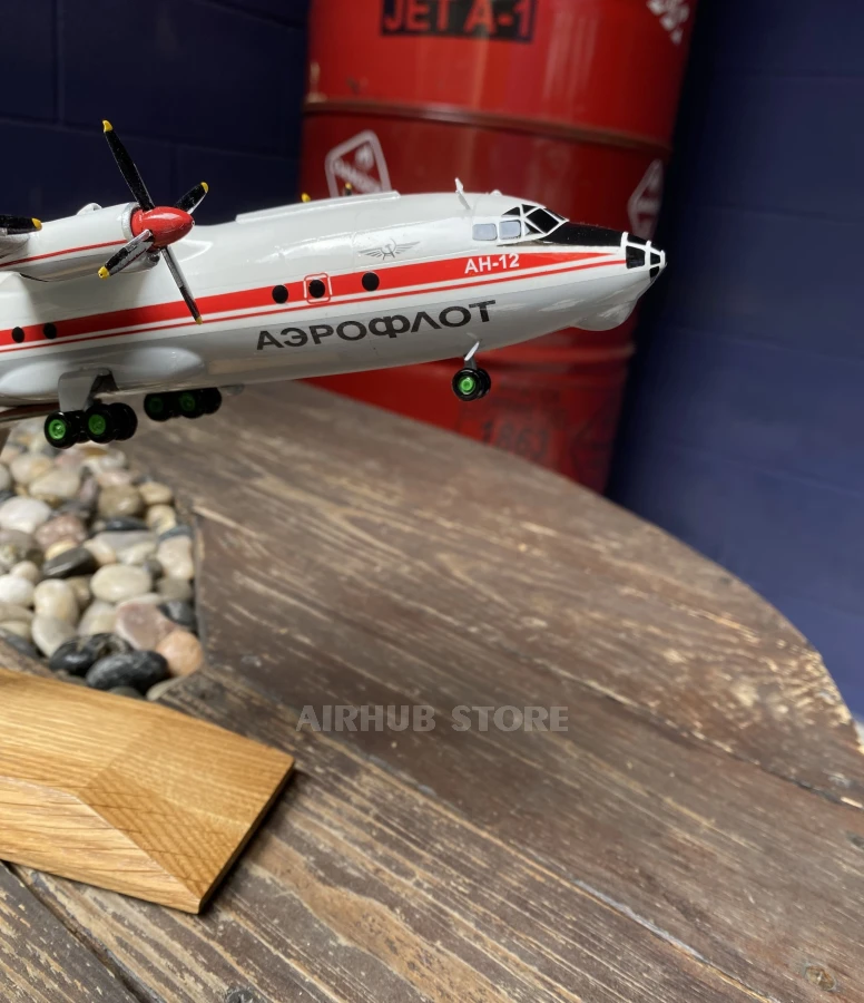 A rare An-12 model in Aeroflot's Polar Aviation livery (CCCP-04366), a replica of the legendary Soviet turboprop transport aircraft.