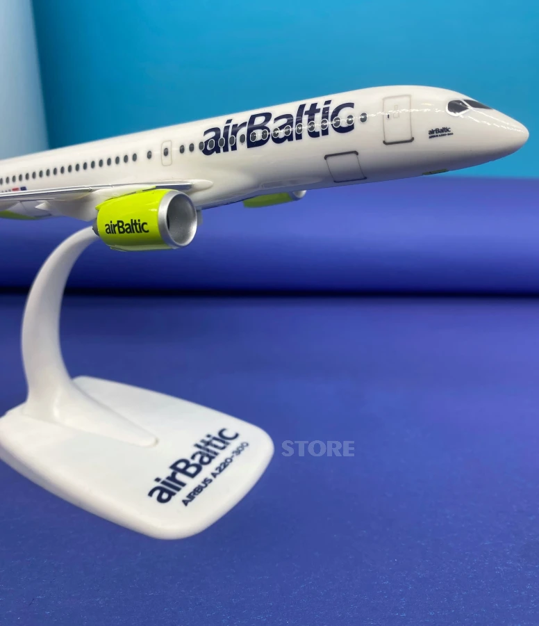 The 1:200 scale model reproduces all the characteristic details of the aircraft: an elongated fuselage, elegant wings and AirBaltic's signature livery with a white body and bright green tail. Thanks to the high level of detail, this miniature looks realistic and will be a great addition to the collection.
