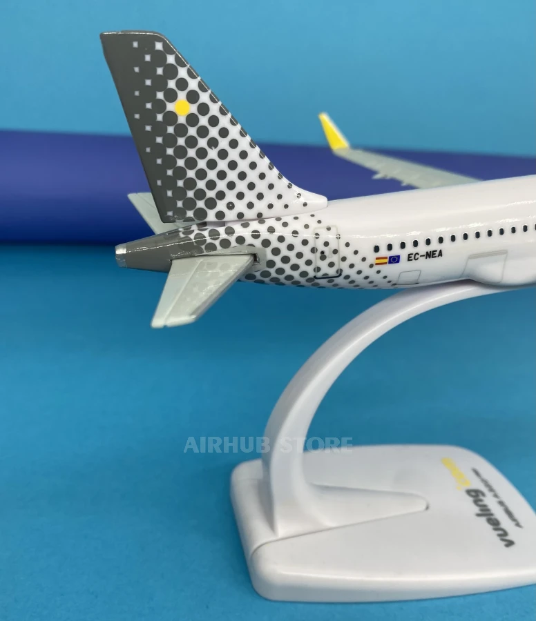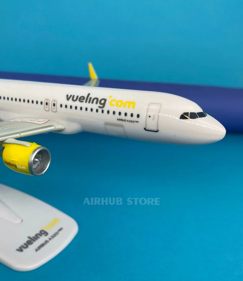 This model represents the Airbus A320 in the livery of one of Europe's most popular low-cost airlines, Vueling Airlines. Founded in Barcelona, Vueling is part of IAG (the British Airways and Iberia group) and serves hundreds of routes across the continent.