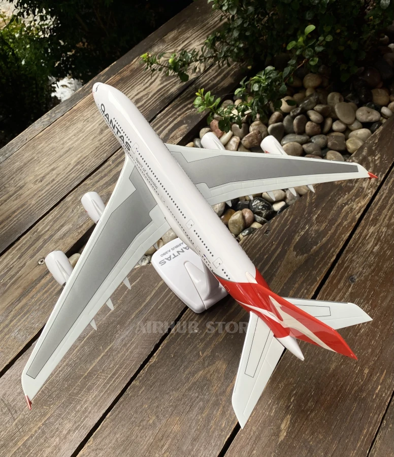 The Airbus A380 is a true giant of the skies, and this 1:200 scale model allows you to appreciate its grandeur. This model features the livery of Qantas, Australia's national carrier, which used the A380 for its longest routes, including between Sydney and London. The registration number VH-OQF corresponds to one of the real aircraft in the company's fleet.