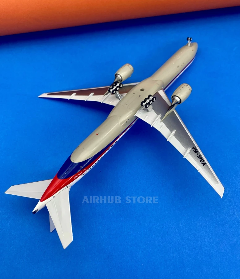 In reality, Malaysia Airlines did not have a Boeing 777-300 in its fleet, and the registration 9M-MSA was used on a different type of aircraft. In this model, the registration is used exclusively as part of the concept and is not a reference to a specific aircraft.