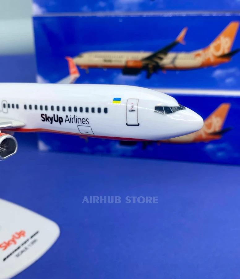 This realistic model of a Boeing 737-800 in SkyUp Airlines livery is not just a souvenir, but a real piece of Ukrainian sky. SkyUp logo with a smile on the keel, and the bright orange engines instantly evoke associations with vacations and flights with the Ukrainian carrier.