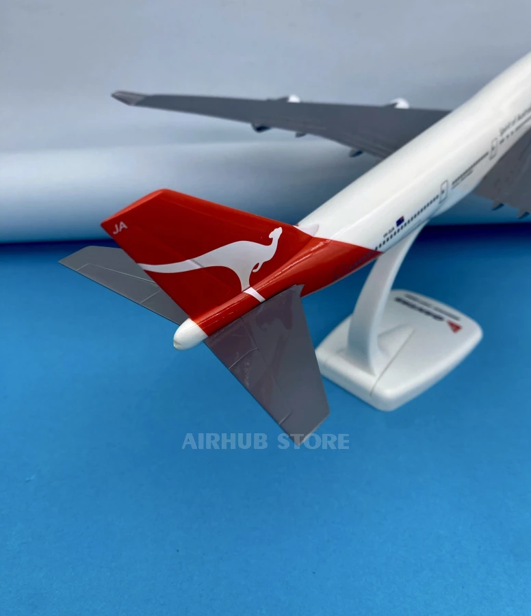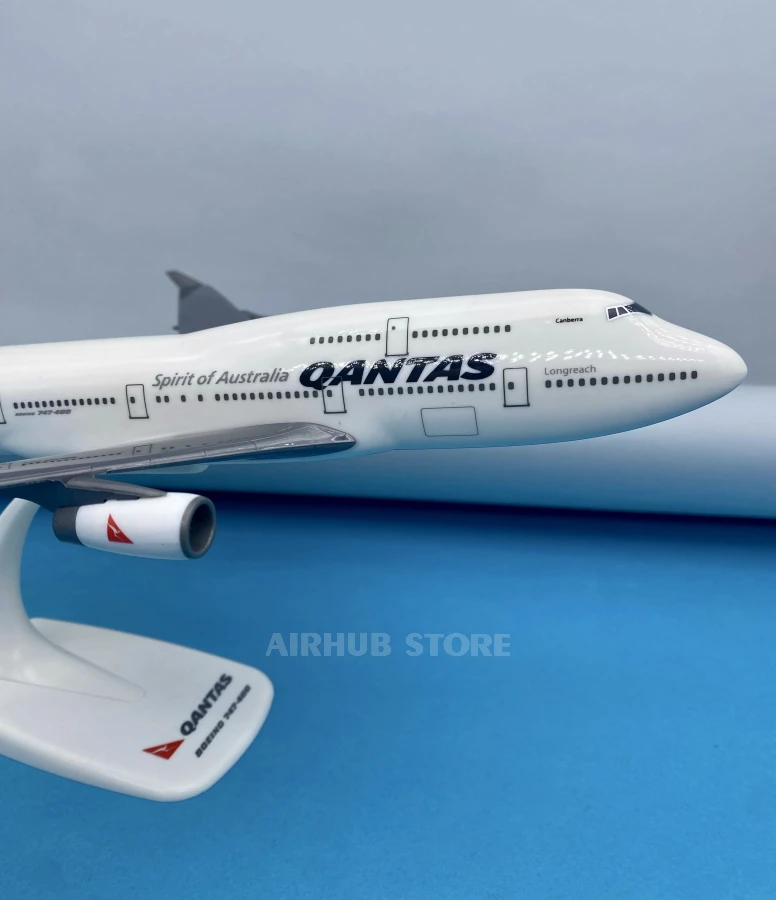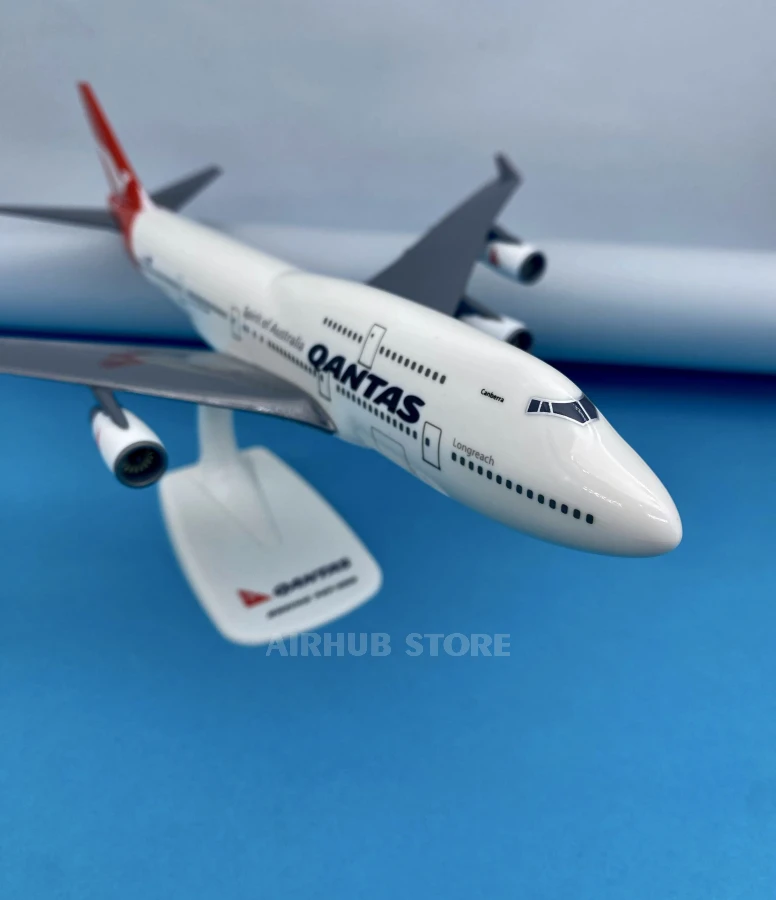 A neat, large-scale model in the recognizable Qantas livery with a red tail and kangaroo. Its compact size allows you to place the model on your desk or in a display case without cluttering up the space.