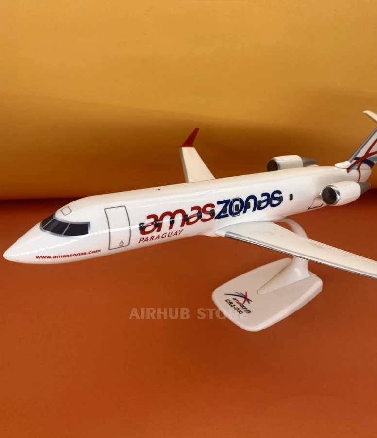 CRJ-200 in the colorful design of the South American airline Amaszonas Paraguay. This compact airplane is designed for short and medium-haul routes, and its large-scale replica is a real gift for civil aviation enthusiasts and exotic carriers.