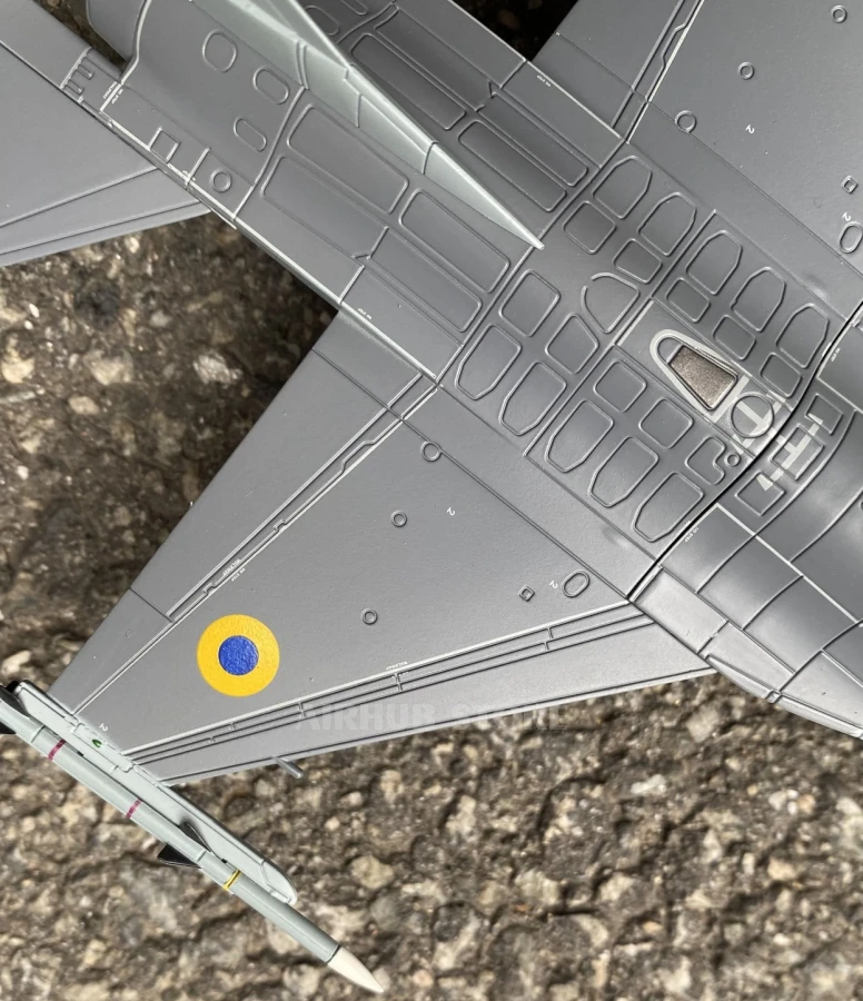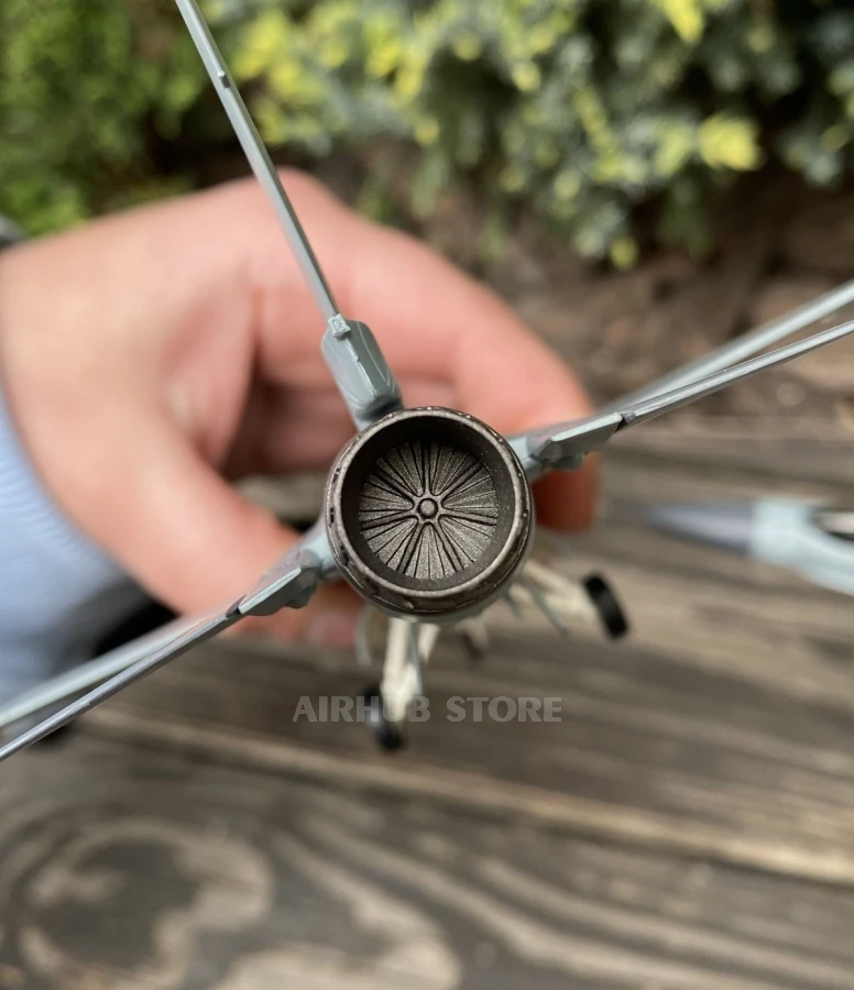 The large-scale model is made with a high degree of accuracy: all elements of the fuselage, wings, stabilizers, nozzle, and pylons with weapons are carefully reproduced. The model comes with a landing gear, pilot, and weapons. The model will be a great addition to a military aviation collection or a symbolic souvenir for a lover of modern history.