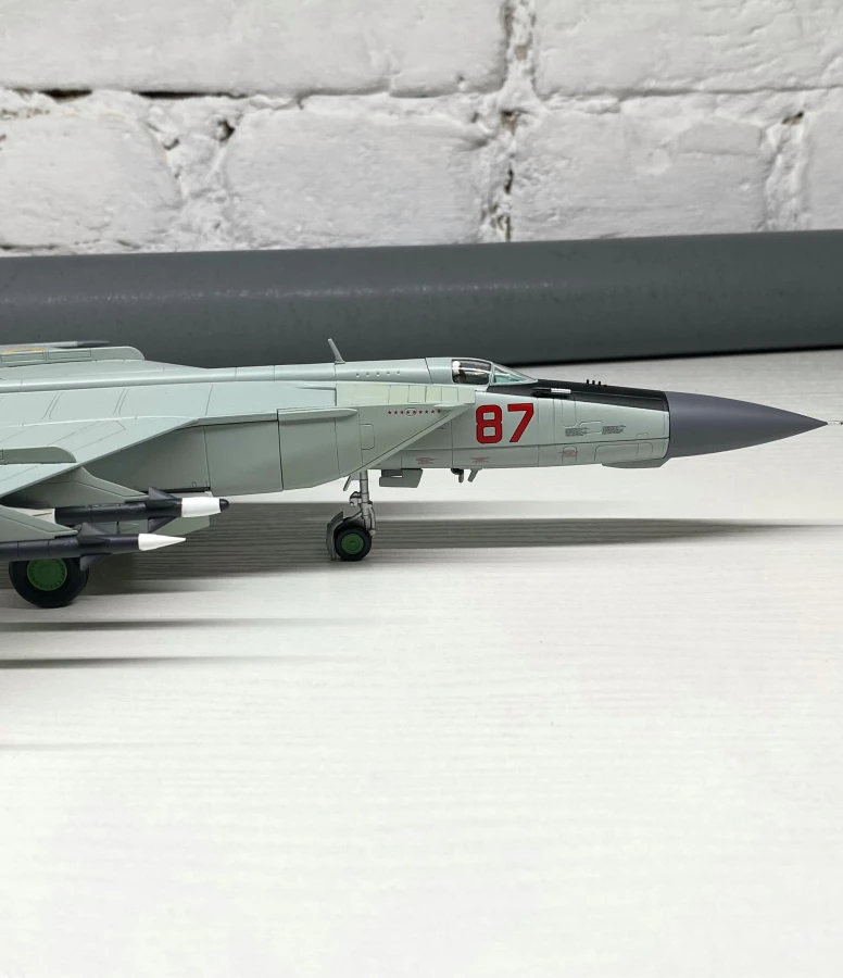 We are pleased to present an accurate scale model of the MiG-25 Foxbat Red fighter jet with tail number 87, one of the most famous Soviet aircraft, famous for its supersonic speed and ability to intercept strategic targets. This red model looks impressive and realistic thanks to the thoughtful details and high-quality workmanship.