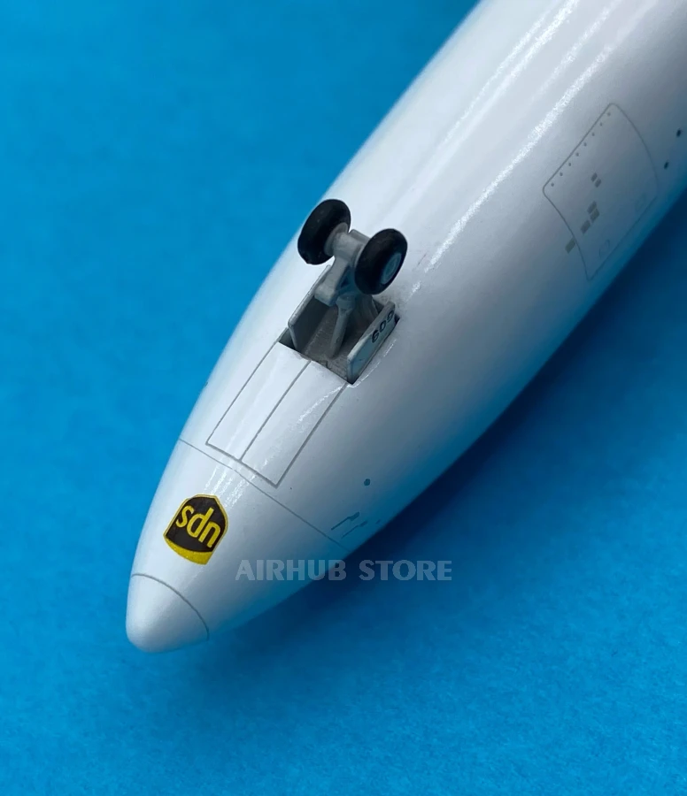 The Boeing 747-8F UPS is one of the largest and most efficient cargo aircraft in the world. This highly detailed 1:400 scale model reproduces the UPS livery in classic white with a brown and yellow tail and the United Parcel Service logo. The metal body, detailed panels, engines, and landing gear make it look as close to the real thing as possible.