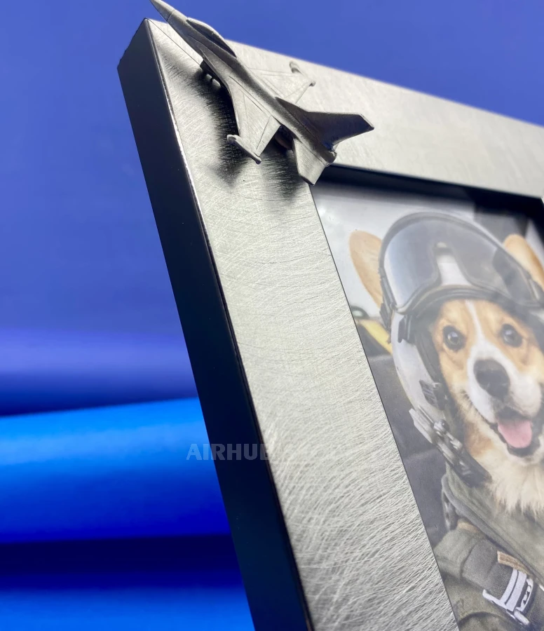 The F-16 Fighting Falcon photo frame is a stylish accessory for those who are passionate about military aviation and modern fighter jets. In the upper corner of the frame is a relief figure of an F-16 fighter jet, one of the most famous multi-role fighter jets in the world.