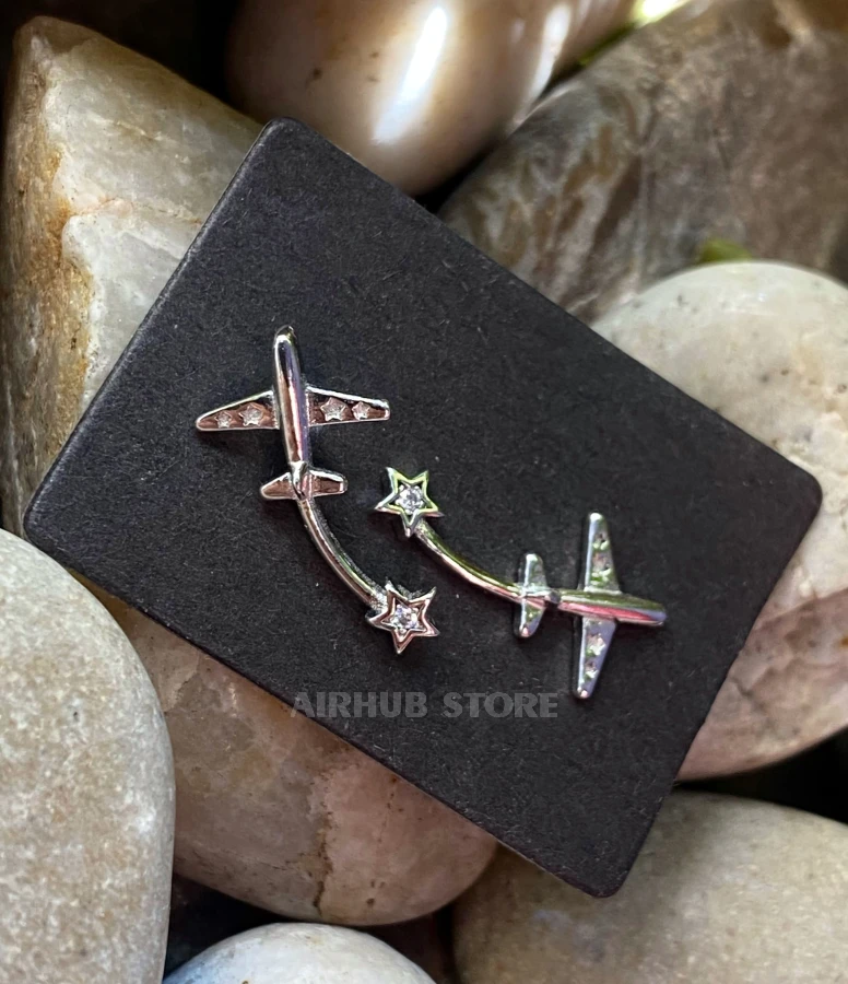 The earrings are made of silver, ideal for those who want to add a touch of sky to their look — dreamy, stylish, symbolic. They are perfect as a gift for an aviator, a traveler, or simply someone who loves airplanes.