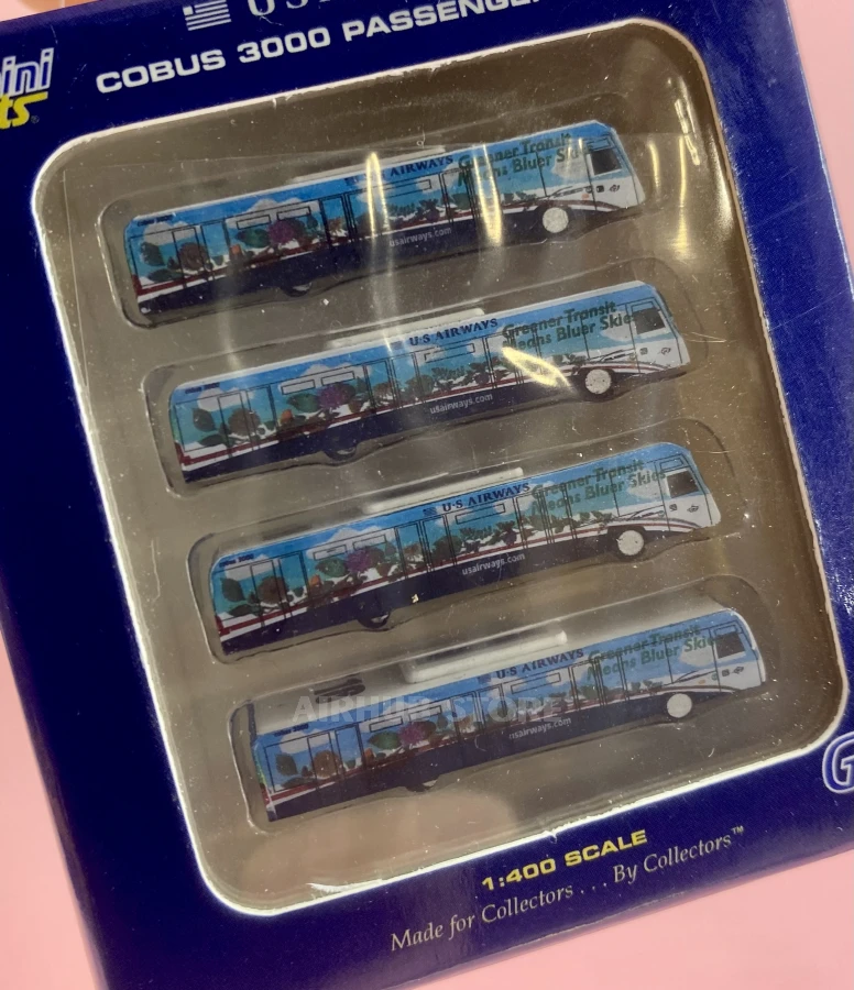 Airport Passenger Bus Cobus 3000 Greener 4in1 Set (US Airways) buses for 1:400 model collection