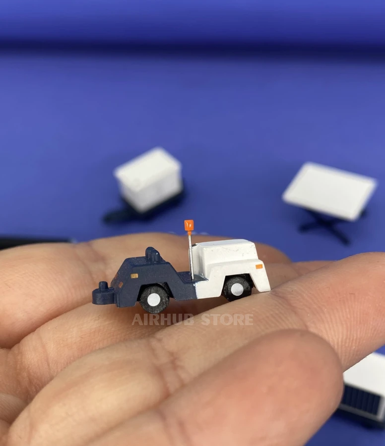 This set is designed for those who want to add realism to their aircraft collection or build a realistic airport diorama. The set includes 10 different ground support equipment items: a small and large tractor, a tow tractor, a baggage conveyor, a pallet loader, a power unit, a container trolley, closed and open baggage trolleys, and a tow bar. Each model is made with attention to detail, replicating real aviation equipment.