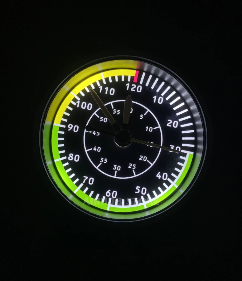 An aviation alarm clock in the form of an airspeed indicator is a stylish decoration for a pilot's room or office. It visually resembles a device with LED backlight when pressed. A perfect combination of aviation design and practical functionality.
