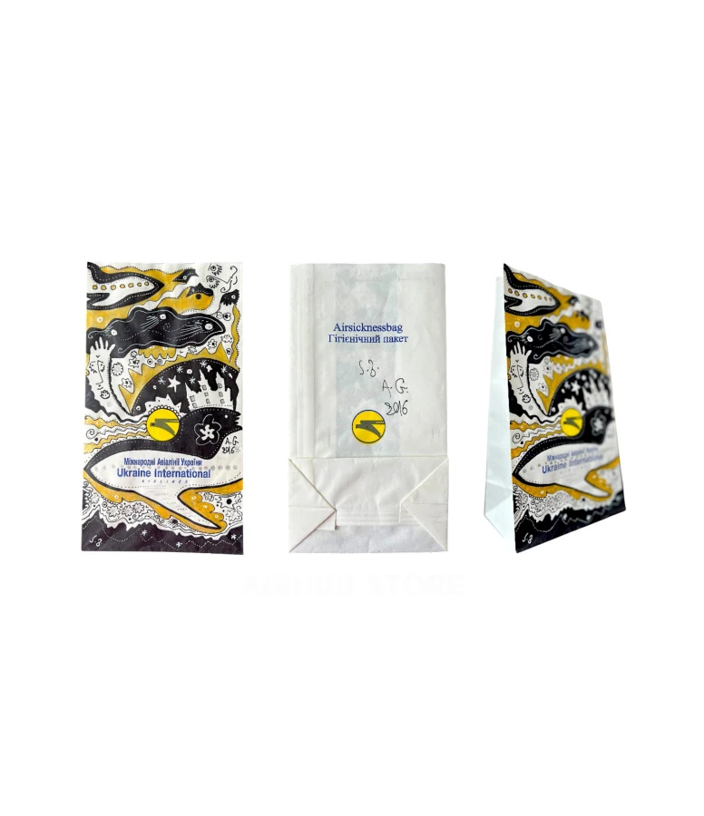 There is a distinct genre in the world known as “sickness bag art”—where artists use airline vomit bags as a canvas for their work. But these are usually isolated experiments or hobby projects. In the case of Art Avia, this is already a full-fledged exhibition project that was presented at the Museum of Modern Art of Ukraine in Kyiv in 2013.