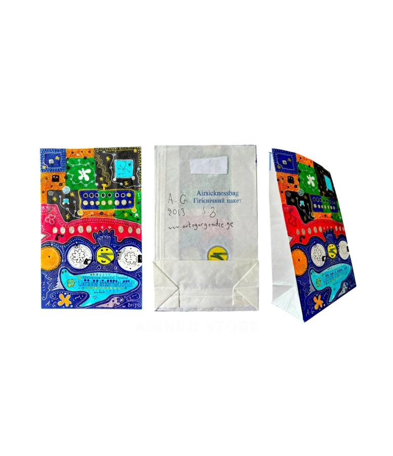 There is a distinct genre in the world known as “sickness bag art”—where artists use airline vomit bags as a canvas for their work. But these are usually isolated experiments or hobby projects. In the case of Art Avia, this is already a full-fledged exhibition project that was presented at the Museum of Modern Art of Ukraine in Kyiv in 2013.