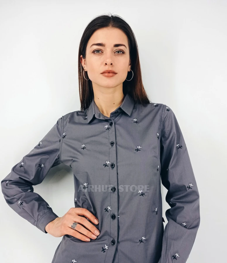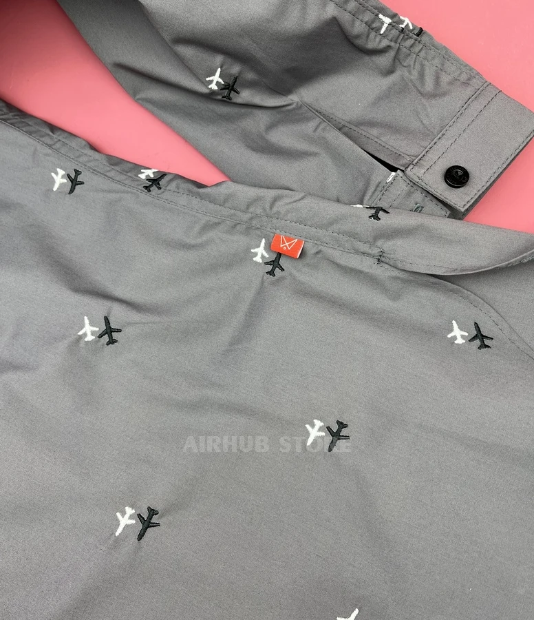 The original ornament in the form of airplane silhouettes embroidered with white threads and black threads of their shadows adds uniqueness and attracts attention.