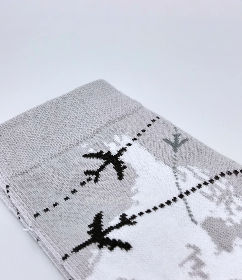 Stylish socks with a print in the form of a radar flight map. Ideal for those who are fond of aviation, navigation and the sky.
