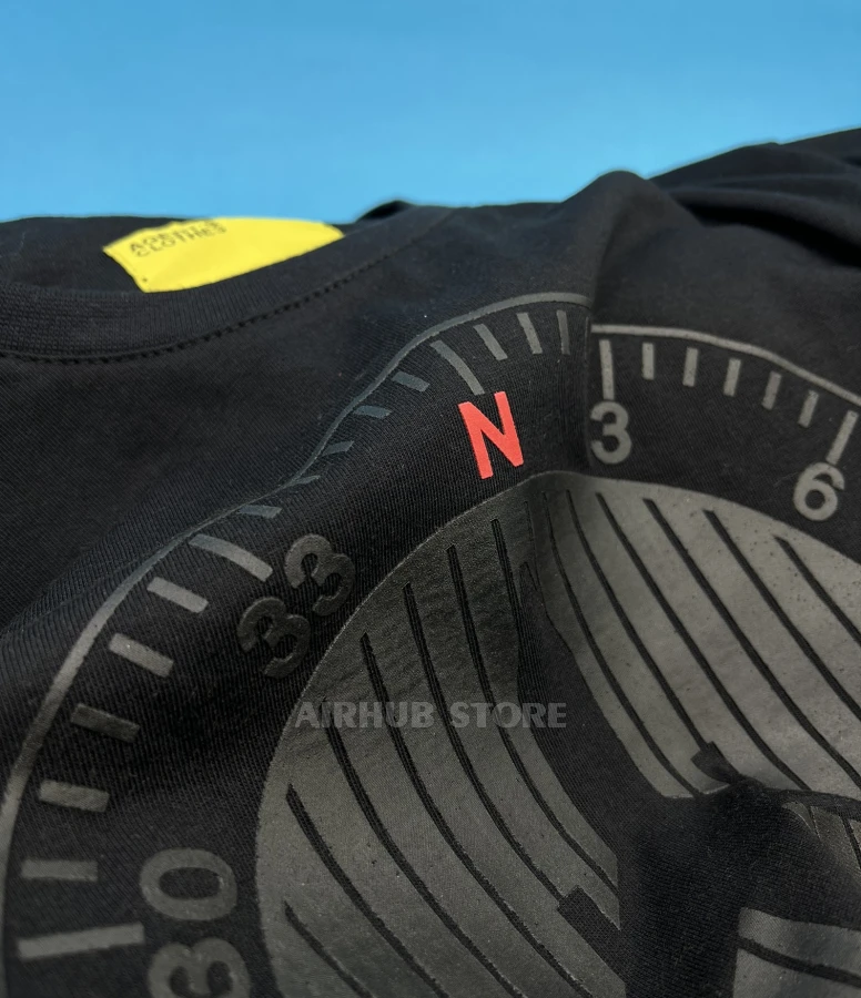 This T-shirt is a true symbol of the sky, created for those who feel a special connection with aviation. Its stylish design is inspired by the navigation instruments used in the cockpit of an airplane. The image of the heading indicator is not just a decorative piece - it reflects the spirit of freedom, precision and craftsmanship that are an integral part of the aviation world.
