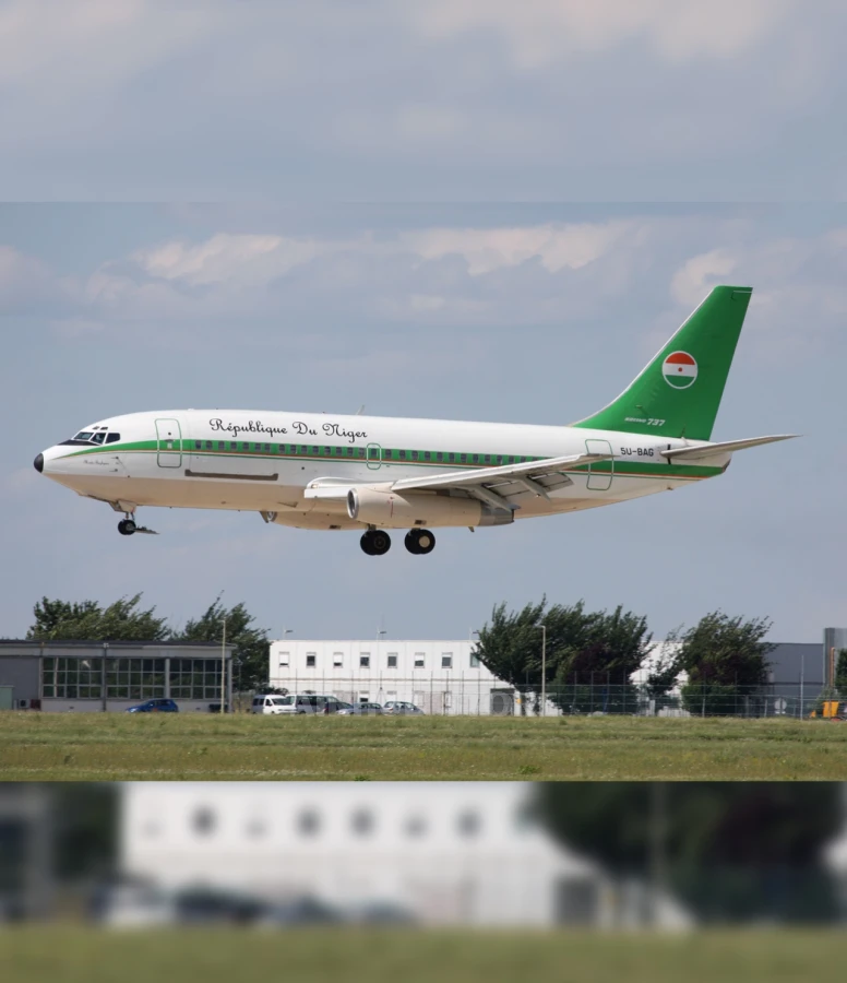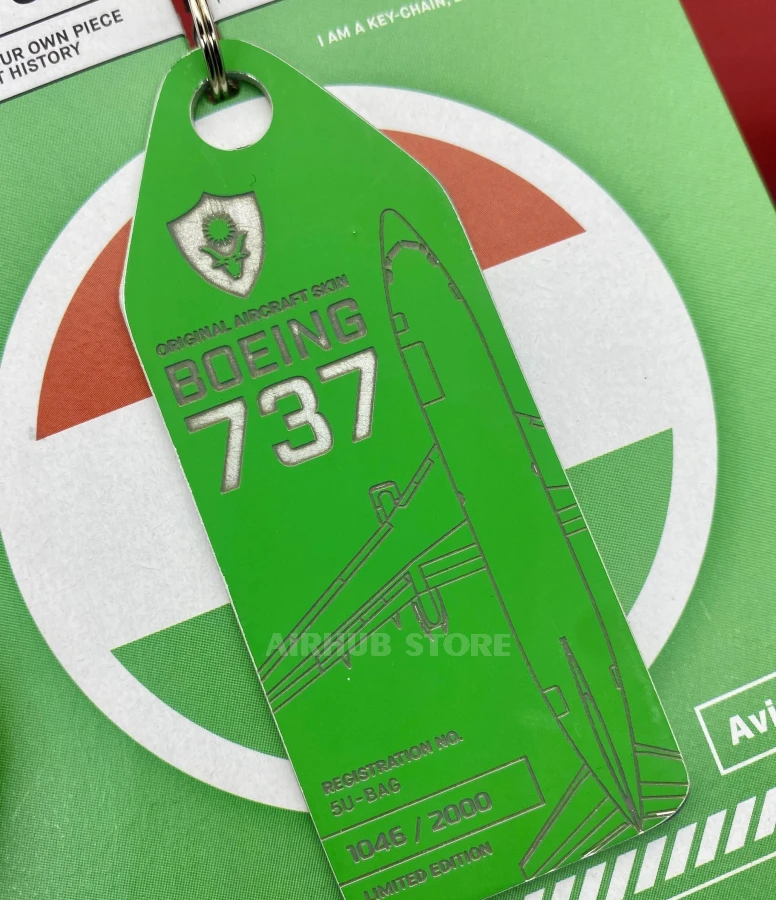 The keychain is made from the actual skin of a Boeing 737-200 with registration number 5U-BAG, an aircraft that served as the official presidential aircraft of the Republic of Niger for over three decades. Delivered in 1978, it carried presidents, diplomats, and state delegations around the world — from African airfields to European capitals, including flights to London.