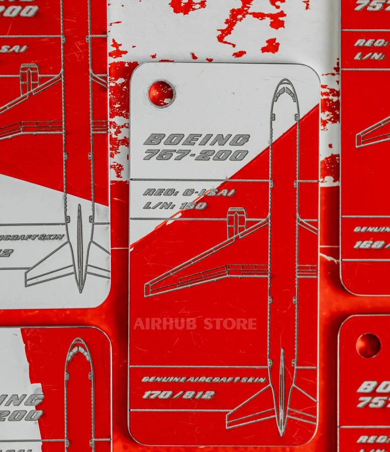 A unique keychain from a Boeing 757-200 G-LSAI airplane that operated commercial flights. A real artifact for aviation fans.