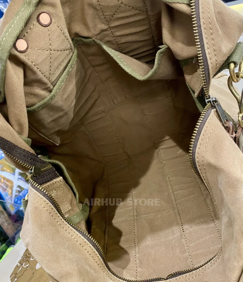 Thanks to thoughtful details such as YKK zippers, brass hardware, and reinforced seams, the bag not only looks authentic but also remains extremely practical to use. Its spacious compartment allows you to easily store your travel or weekend essentials, and the comfortable shoulder strap ensures comfort when carrying. It is a versatile accessory that combines military history and modern functionality. The bag looks great both in everyday urban style and when traveling, from weekend trips to long flights.