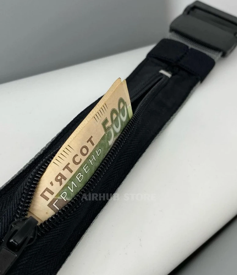 The fabric strap has no metal elements, so it does not rattle on the frame at the airport and does not require removal when passing through a metal detector. This belt also has a hidden pocket for storing money.
