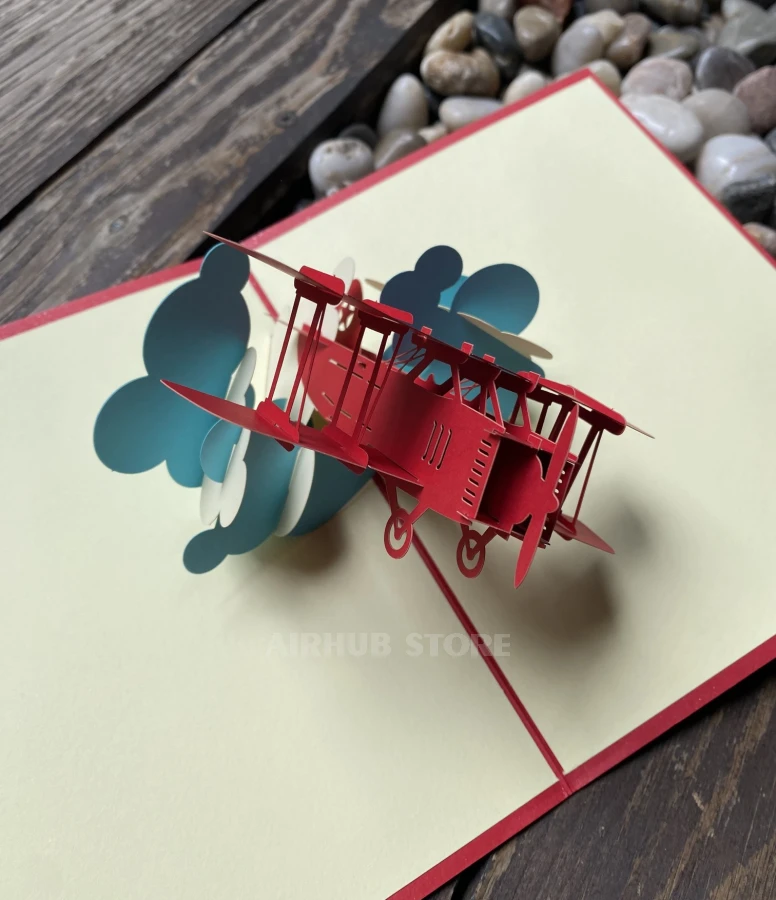 A 3D biplane card is a stylish aviation greeting for a pilot, collector, or just a fan of the sky.