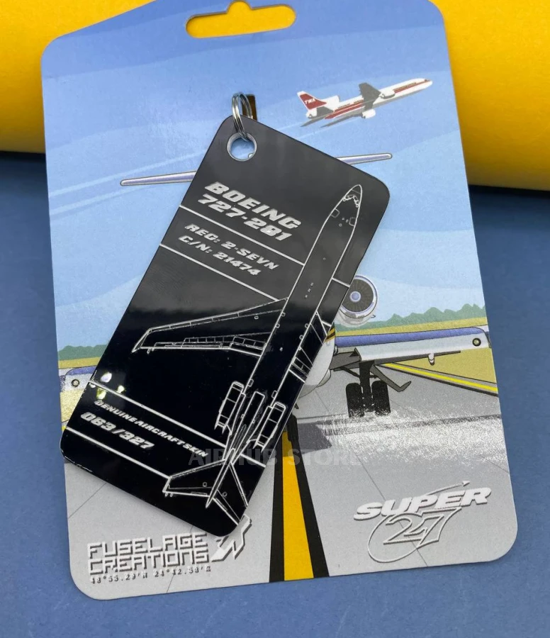 This keychain was recycled from a 727 aircraft with a rich and interesting history. Starting its career with the Japanese airline All Nippon Airways