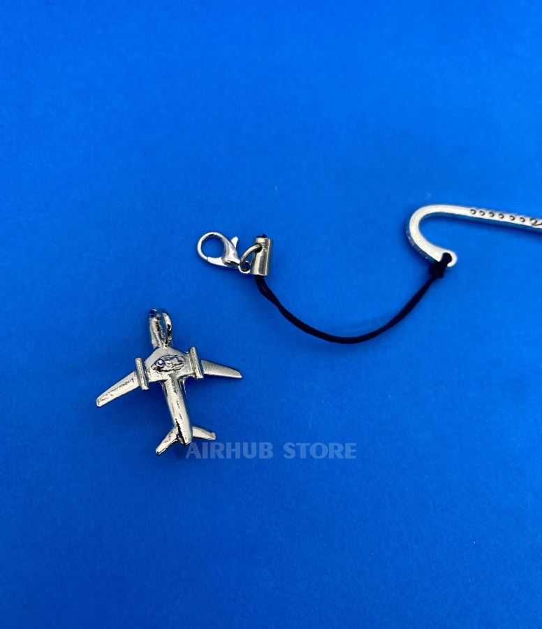The Boeing 737 bookmark is a small detail that combines a love of books and the sky. Its metal base has a smooth shape with a decorative pattern, and a three-dimensional airplane, a miniature copy of a Boeing 737 passenger plane, is suspended at the end. It is not only functional but also aesthetically appealing: it holds the page securely and at the same time reminds you of flights, travels, and dreams.