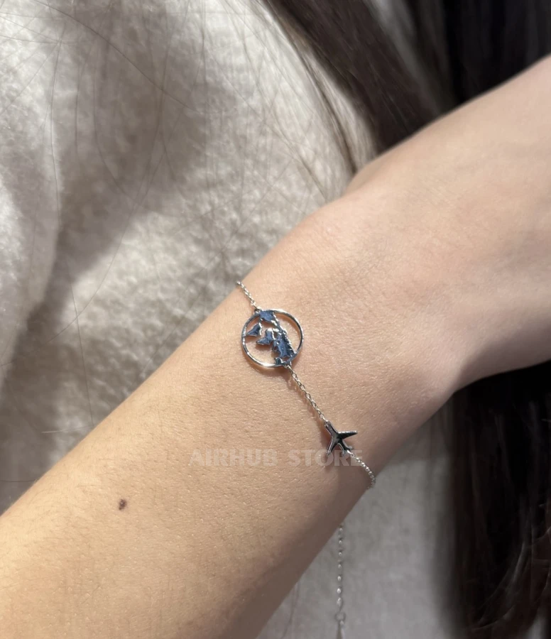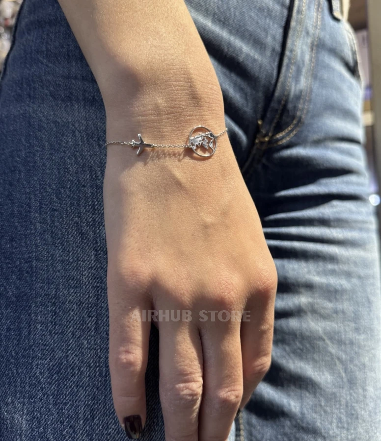 A silver bracelet with an airplane and the planet Earth is an ideal accessory for those who love travel and aviation. It is not just a piece of jewelry, but a symbol of the endless possibilities that travel and discovery bring. An ideal choice for those who want to carry a piece of their dreams with them.