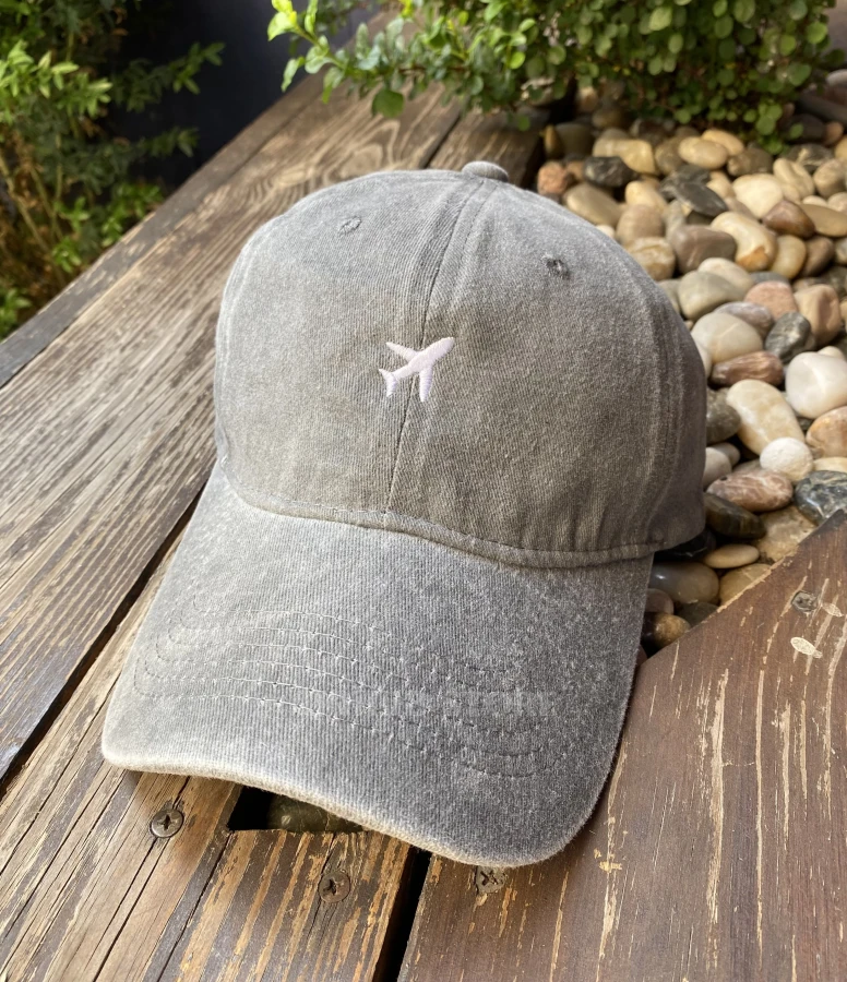The caps with a minimalist embroidered airplane are the perfect choice for true aviation fans. They are made of cotton with a lightly distressed effect, which gives the cap a stylish vintage look.