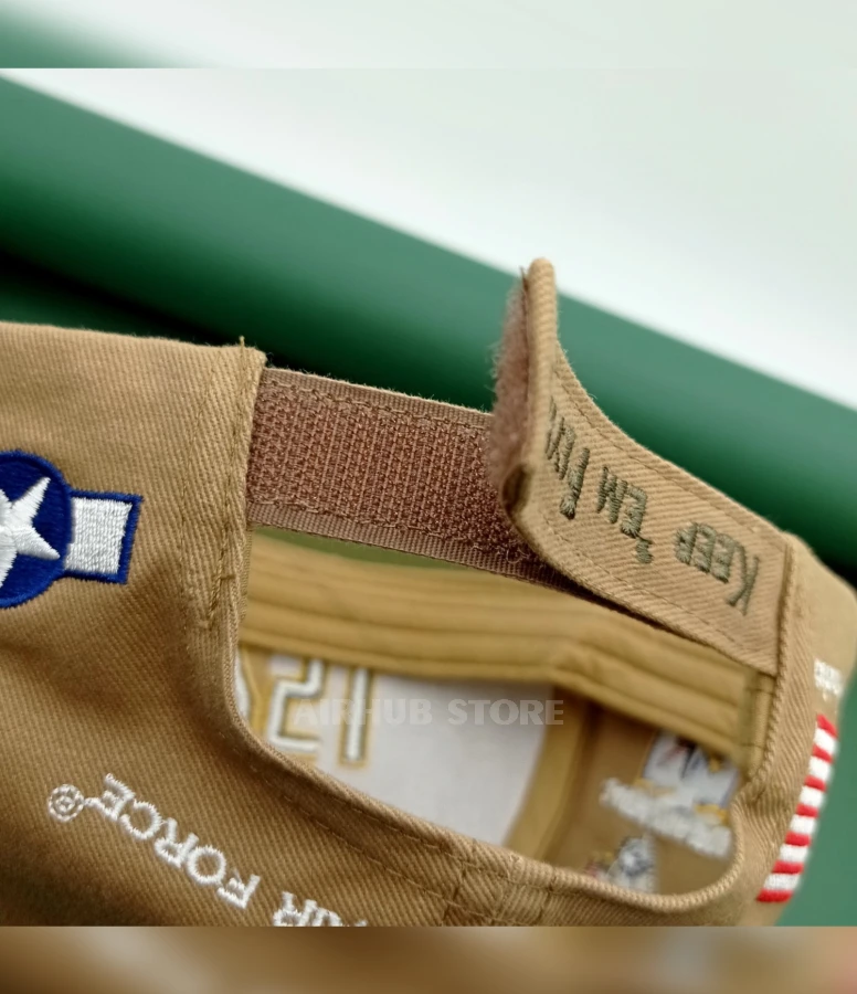 The back of the cap features the name of the Commemorative Air Force, a Dallas-based American non-profit organization that preserves, repairs and displays historic aircraft at air shows, mainly in the United States and Canada.