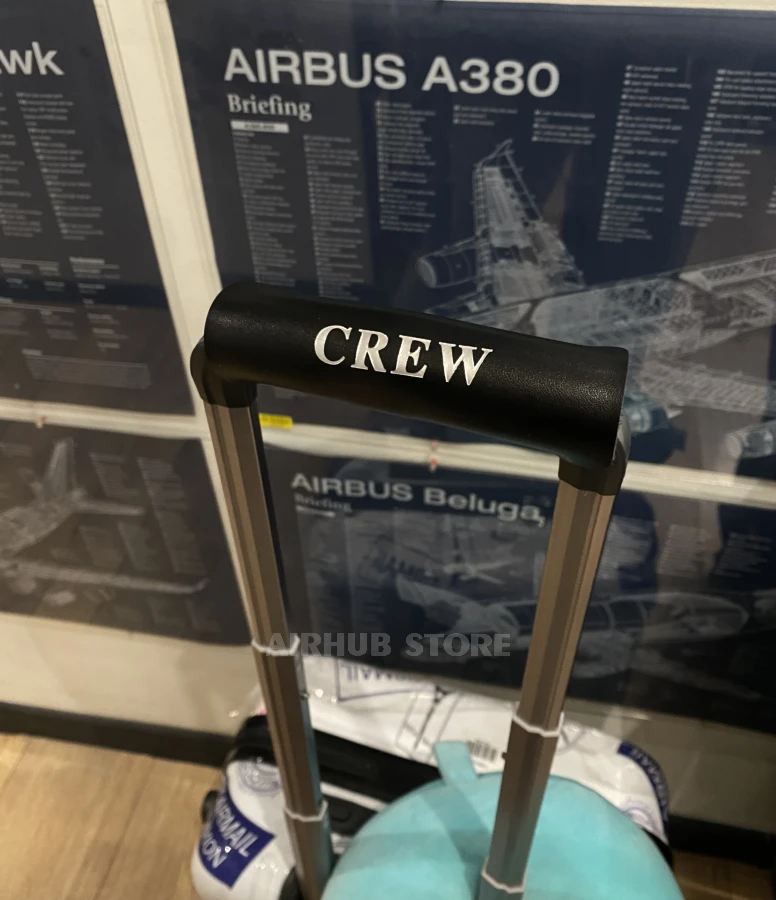 A textile luggage handle cover with CREW embroidery is a practical accessory for crews, pilots, and flight attendants that immediately distinguishes their suitcase from others.