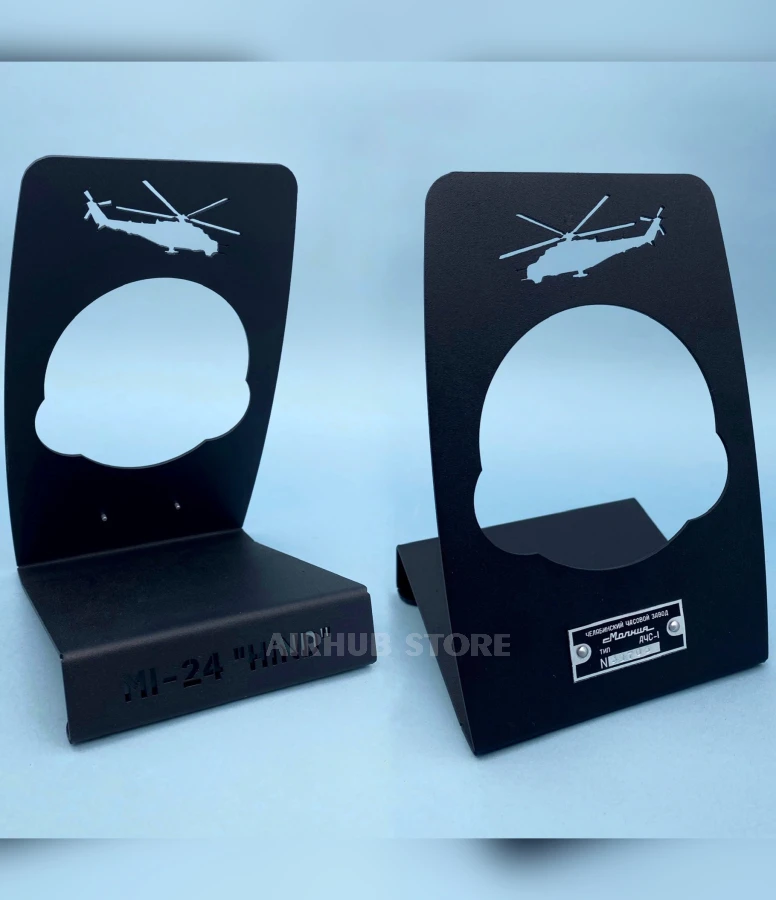 This stand is designed specifically for ACS-1 aviation watches and compatible models. The base is made of 1.5 mm thick metal with a sand-textured powder coating, providing a pleasant tactile feel and scratch resistance.