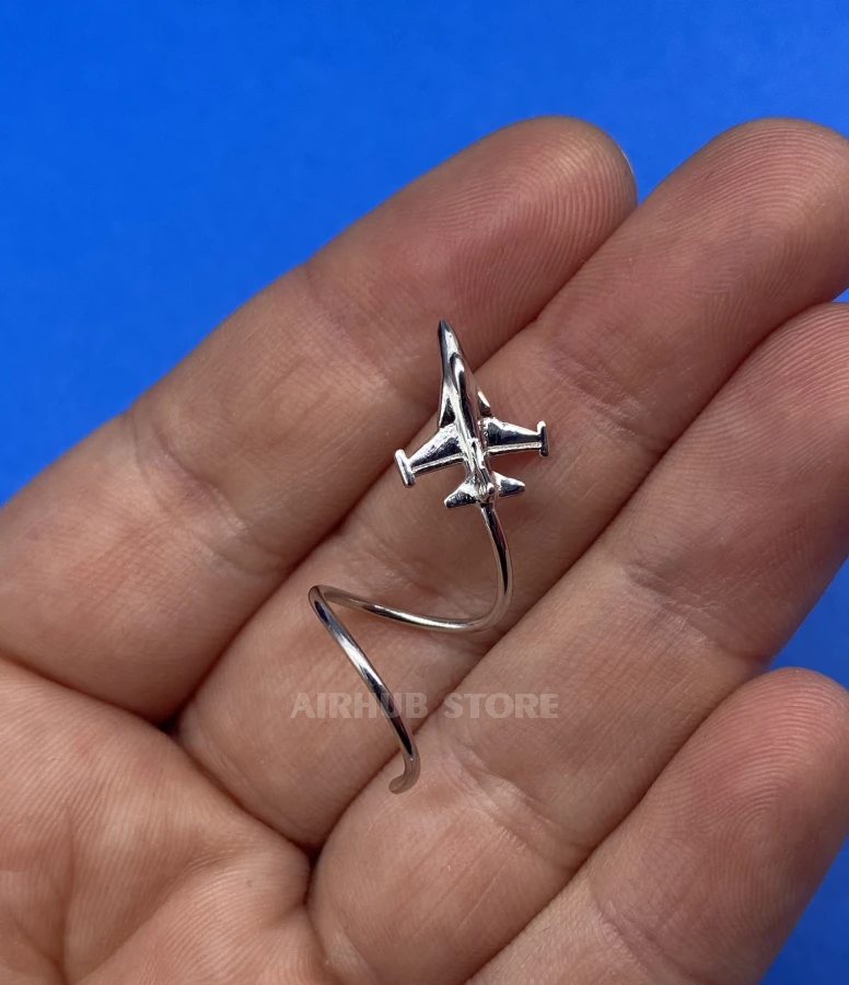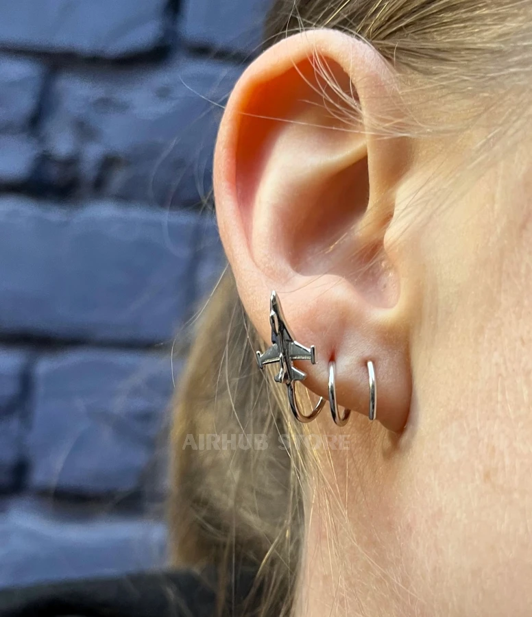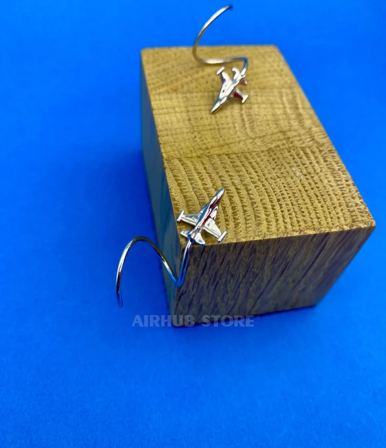 The F-16 is designed in a minimalist but recognizable style: the proportions, wings, and silhouette are accurately and neatly rendered, making the jewelry both elegant and technical. Thanks to its spiral shape, the earring wraps around the ear and looks as if the plane is literally enveloping it during a turn.
