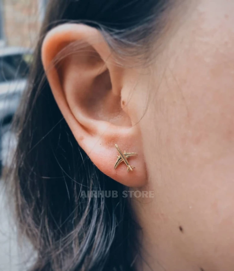 Airplane-shaped earrings are laconic and stylish jewelry with an aviation accent. Ideal for everyday looks and travel enthusiasts.