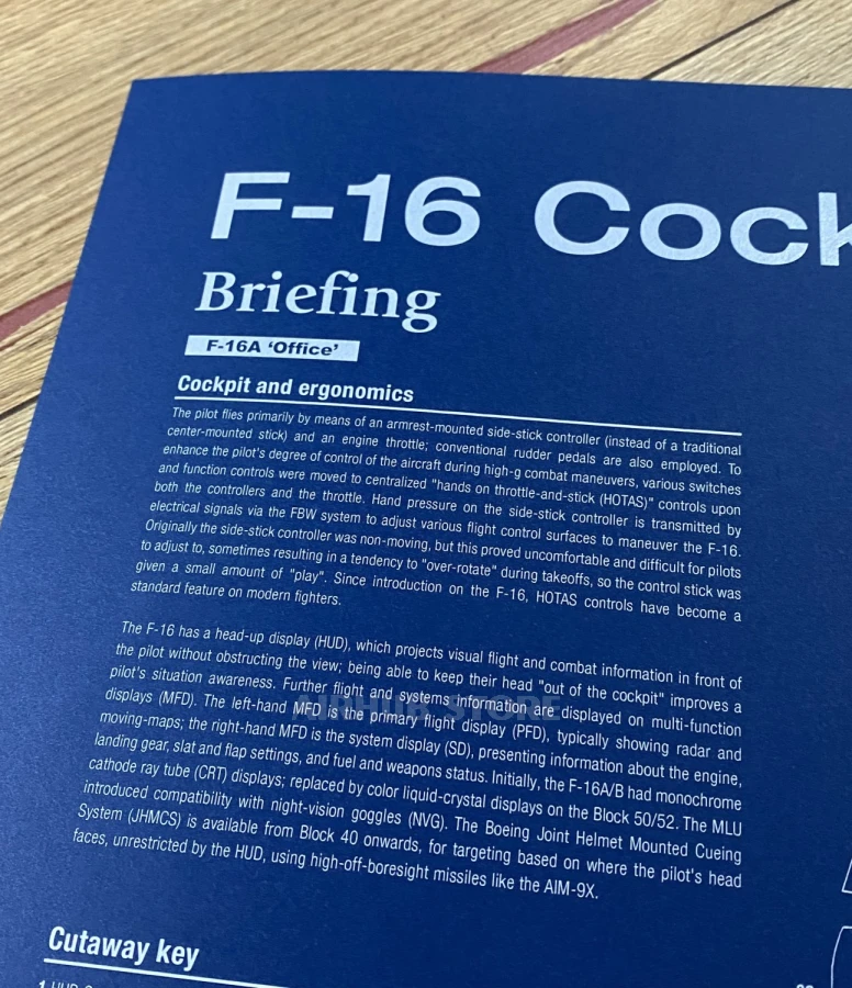 A poster with a drawing of the cockpit of an airplane, a dark blue poster shows a layout diagram. All the elements are numbered and described around the image, with a decoding and description. The poster itself is printed on thick blue paper, measuring 36 cm by 33 cm.