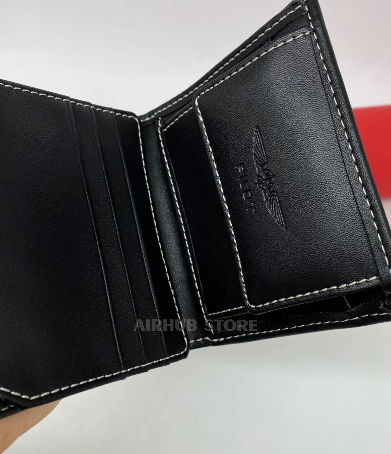 The wallet has silver-colored wings on the outside and compartments for cards, bills and coins inside. Equipped with RFID protection, convenient internal layout with several compartments for cards and bills, made of a pleasant to the touch material. The pen is lightweight, comfortable to write with, with a smooth surface and laconic branding. The key holder complements the set and adds practicality for everyday use.