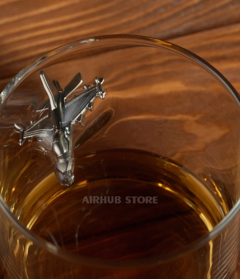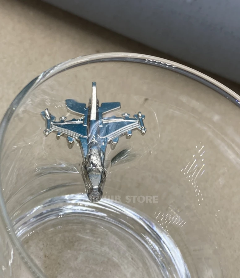 The uniqueness of this glass is that the plane is built into the glass without any damage or loss of tightness. This creates a unique effect and attracts the attention of those around. The Su-25 FrogFoot looks like it's flying through the sky right in the middle of your glass.