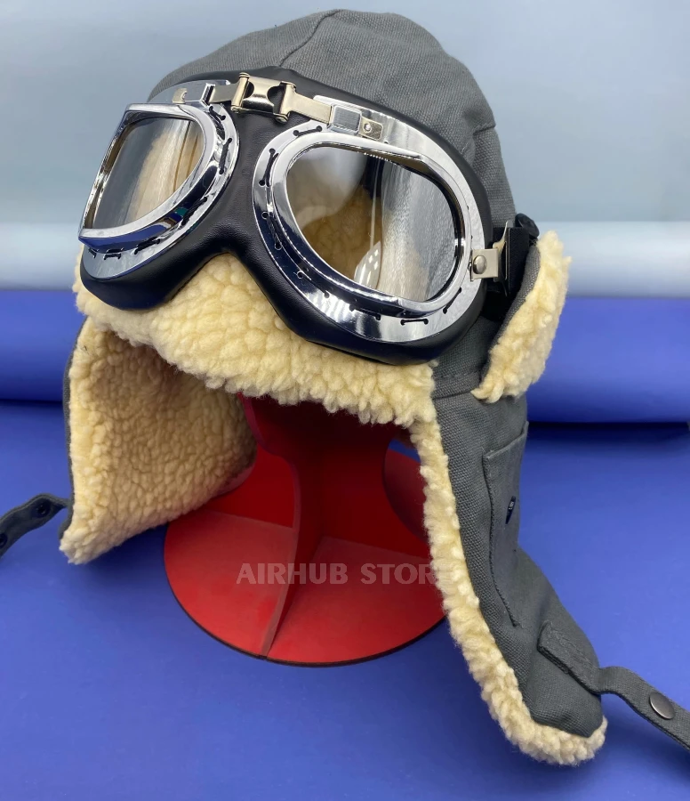 An aviation beanie with glasses is a warm accessory, wearing this hat you can pretend to be a real pilot! Insulated with artificial wool and holofiber, with an adjustable size.