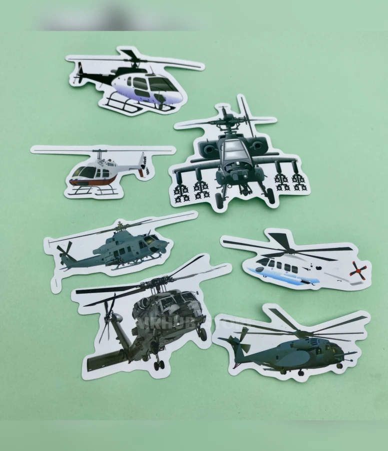 In this set, you will find stickers with different models of helicopters that will definitely attract the attention of all aviation enthusiasts.