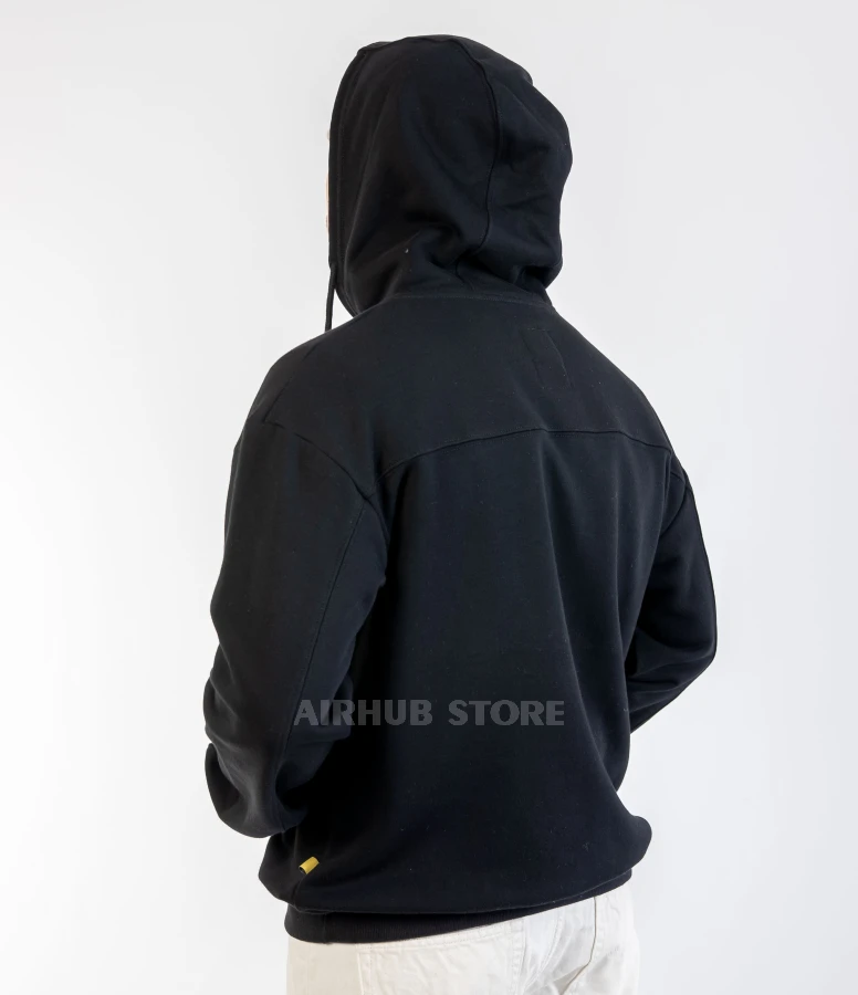 The design of this hoodie is inspired by aviation: a minimalist print with an airplane silhouette symbolizes a passion for travel and adventure. The black color adds elegance and can be easily combined with any wardrobe. Thanks to the thoughtful unisex cut, it is suitable for both men and women, providing a comfortable fit and freedom of movement.