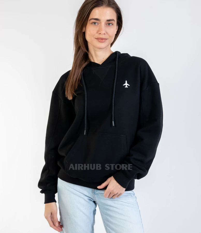 The design of this hoodie is inspired by aviation: a minimalist print with an airplane silhouette symbolizes a passion for travel and adventure. The black color adds elegance and can be easily combined with any wardrobe. Thanks to the thoughtful unisex cut, it is suitable for both men and women, providing a comfortable fit and freedom of movement.