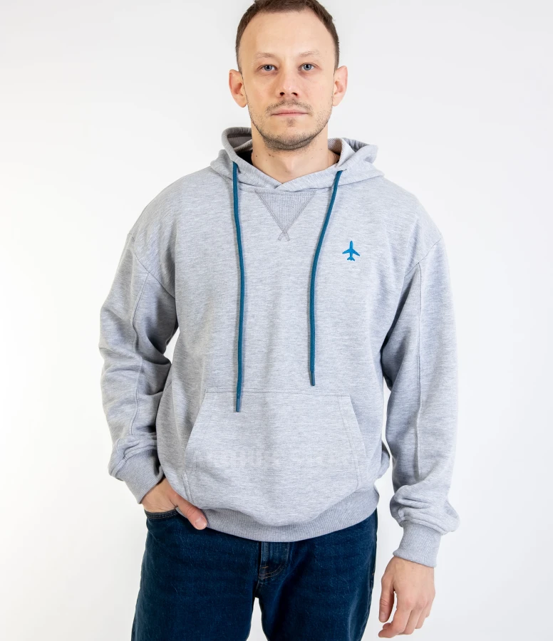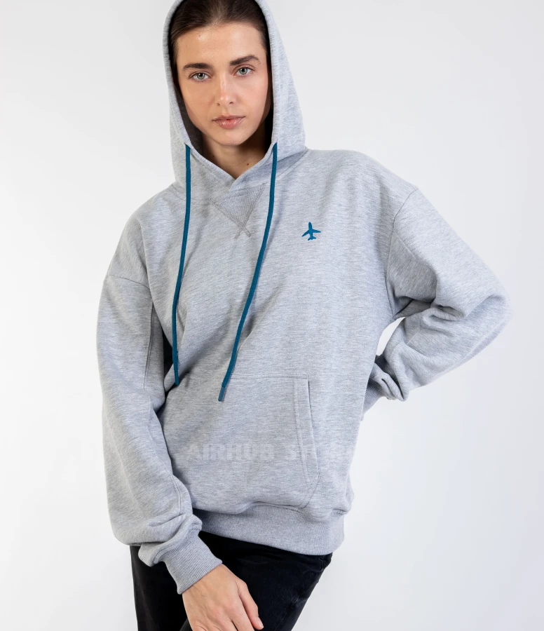 Oversized hoodie with embroidered airplane unisex gray (100% Cotton , XS , Unisex)