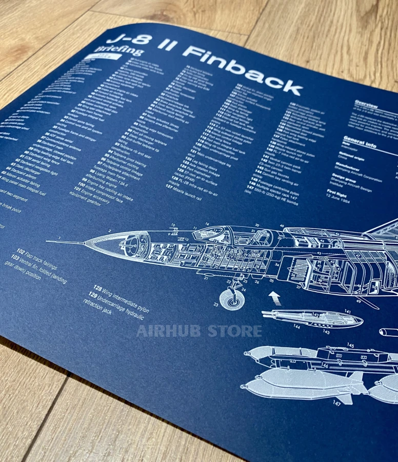 This poster is dedicated to the Shenyang J-8 jet fighter, which became one of the symbols of the development of Chinese military aviation during the Cold War. The image shows the sleek silhouette of a twin-engine aircraft with a detailed description that conveys the cold aesthetics and technical power of the machine.