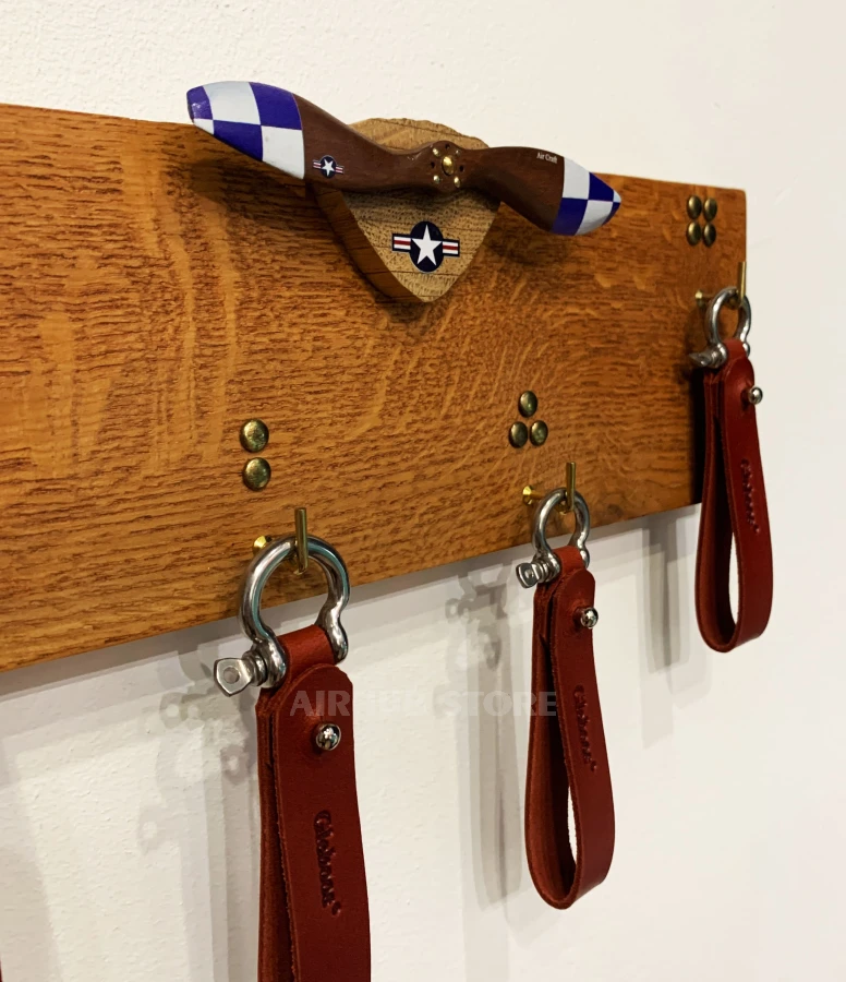 This stylish wall-mounted key holder is not just an organizer, but a real art object for aviation fans. The base is made of natural oak, and a decorative accent - a wooden aircraft propeller on a magnet - adds uniqueness and thematic character to the product. The keys can be easily removed, carried around, and immediately hung back up. A well-thought-out design makes this key holder not only a decorative but also a functional part of your interior - especially if you appreciate aviation aesthetics.