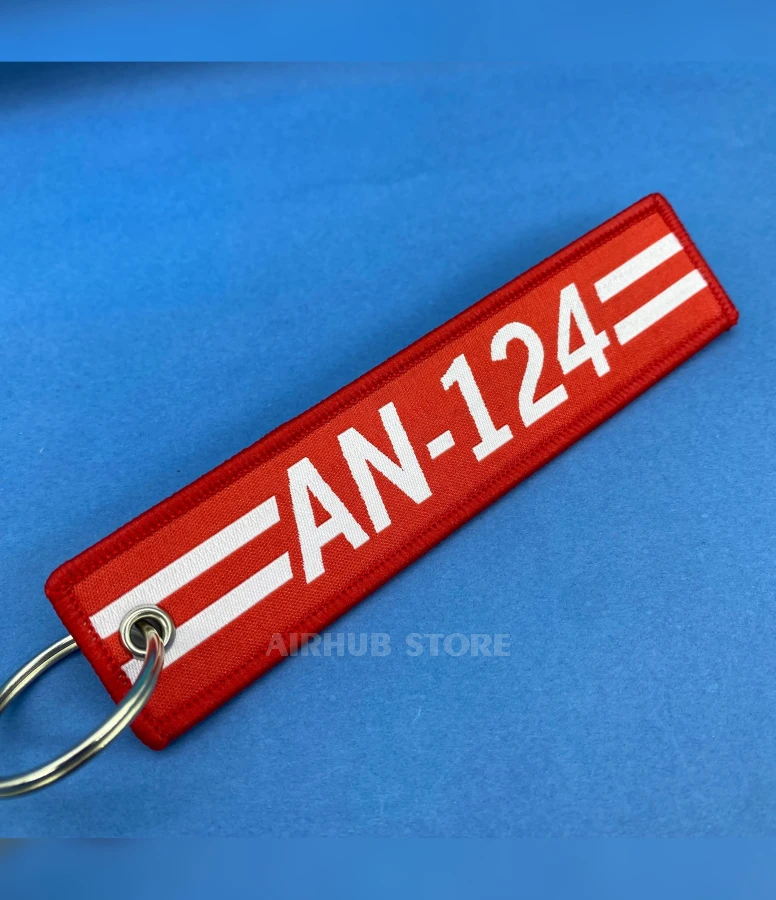 A bright double-sided blue keychain with the popular Antonov An-124 airplane, it is easy to attach to your keys, backpack or bag.
