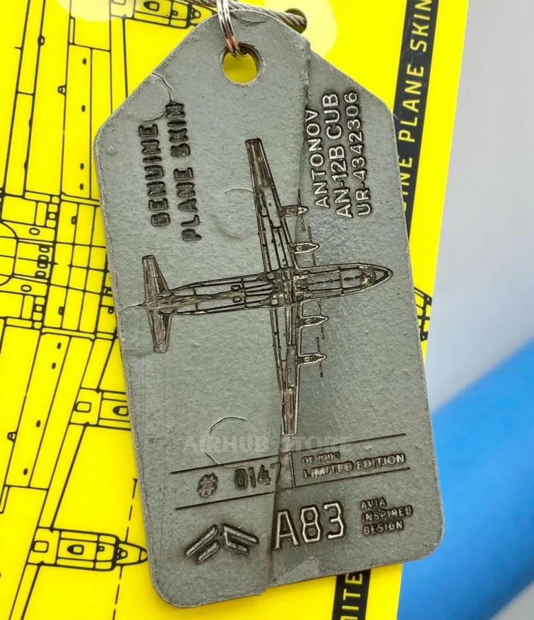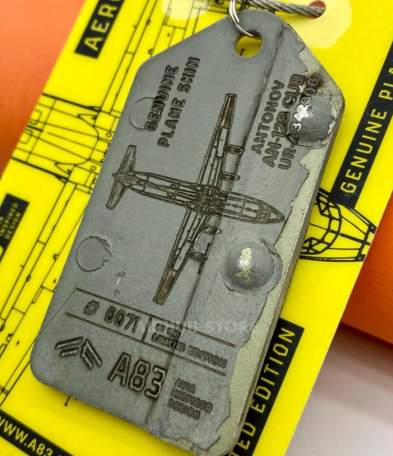 This keychain was made from the skin of the An-12B aircraft. All keychains have a unique serial number, 1000 pieces were made.