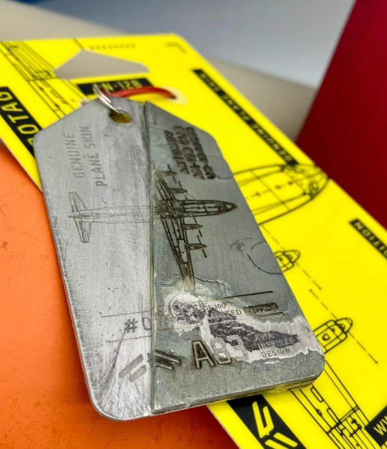 Note: Each tag is unique. They differ in touch, material thickness, and color. Small irregularities reflect the many years spent in the air. Minor scratches, paint chips, and irregularities are quite normal and add a special charm - the charm of a vintage product. These features are not the result of the manufacturing process, but reflect the condition of the materials used in the aircraft!